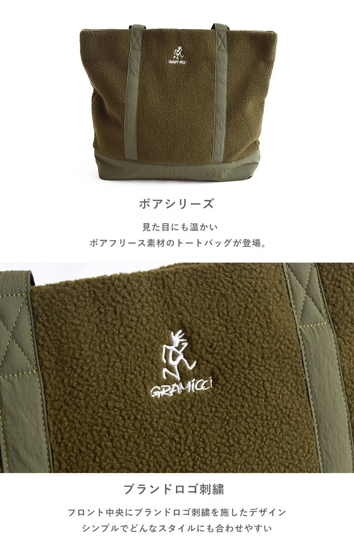 メーカー希望小売価格はメーカー商品タグに基づいて掲載しています ▲クリックで拡大します GRAMICCI(グラミチ)より、見た目にも温かいボアフリース素材のトートバッグが登場。