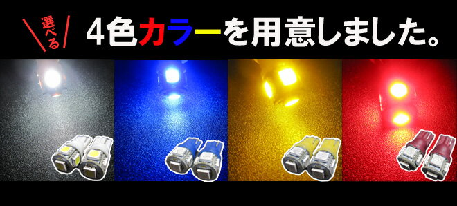 \5月6日(木)まで!GWセール開催中!/T10 ウェッジ球 LEDバルブ ポジション ライセンス ドアカーテシ ルームランプ サイドウインカー 3chip SMD 【5連 選べる4色 ホワイト ブルー イエロー レッド♪】 T10バルブGAV[K]