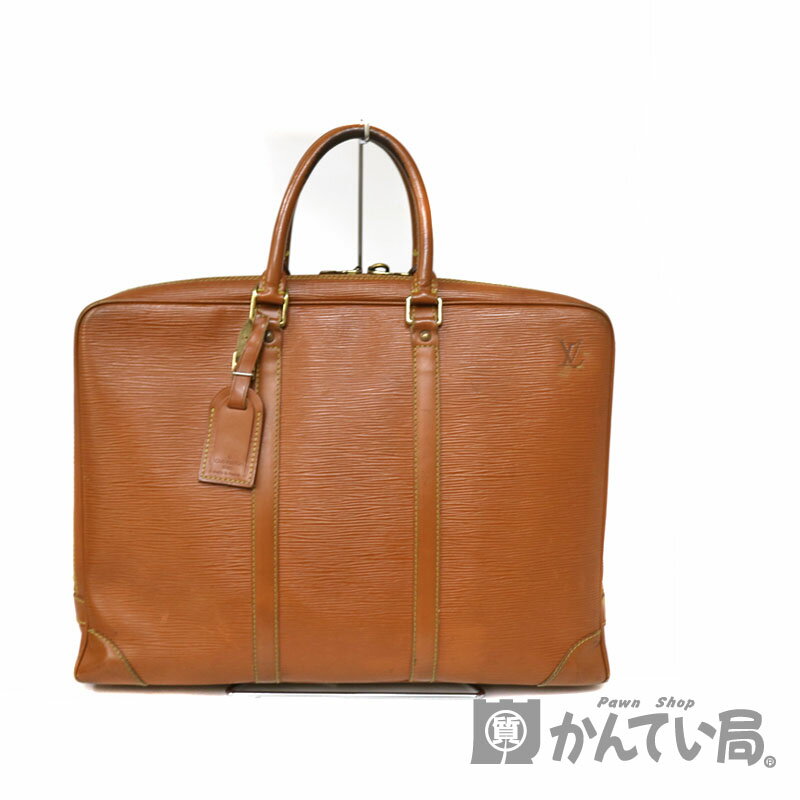 【中古】LOUIS VUITTON◆ブリーフケース/--/ブラウン/無地/内側劣化/ベタ付き有/ビジネスバッグ エピ ポルト ドキュマン ヴォワヤージュ【バッグ】