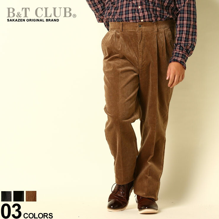 大きいサイズ メンズ B&T CLUB (ビーアンドティークラブ) ストレッチ ツータック コーデュロイ ロングパンツ パンツ ロングパンツ ストレッチ 無地 暖かい 洗える きれいめ 秋 冬 BT812956Z