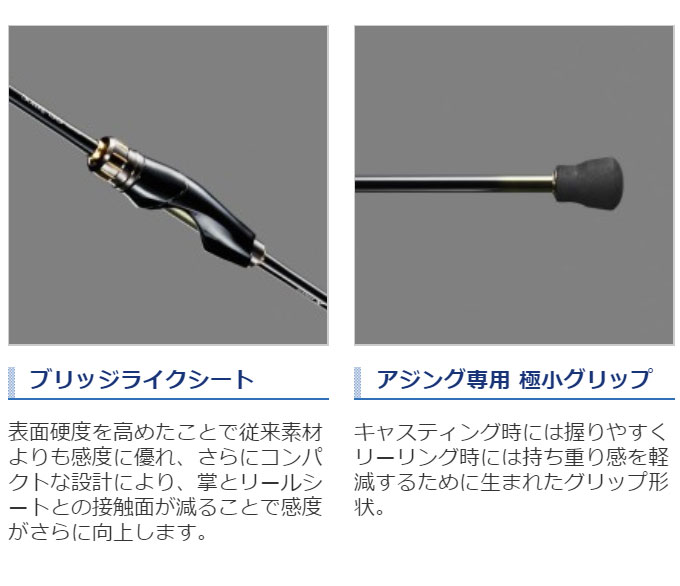操作性と存在感が際立つ『ブリッジライクシート』を搭載し、リグやメソッドが多様化するアジングシーンにフィットする一本がここに。